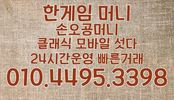 안전하고 빠른 한게임머니현금화 거래는 ‘손오공머니’와 함께 하세요. 문의는 010-4495-3398로 언제든지 연락 주세요.